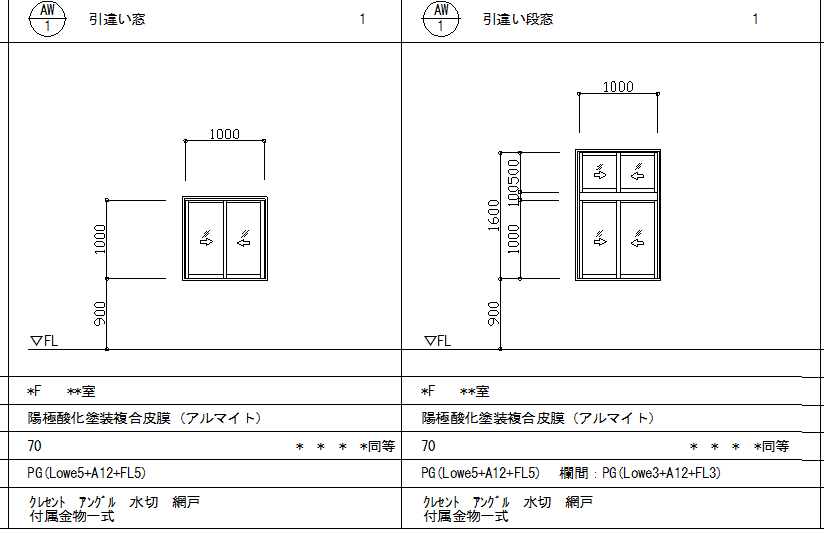 AW-01の窓サイズと窓の材質(アルミウィンドウ)が読み取れるという事になります。